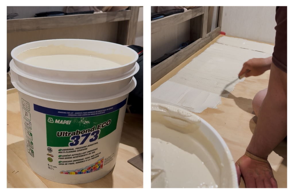 So, I did the research on what kind of glue would be best for flooring you put in a rv and found that one of the best kinds was the Ultrabond ECO 373 by MAPEI.