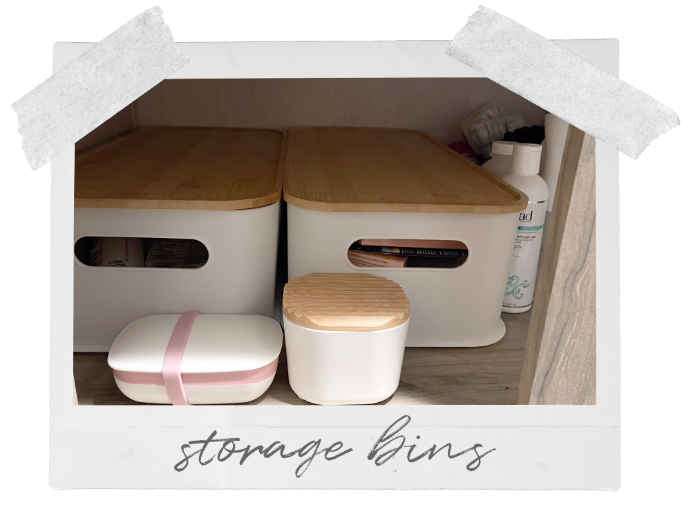 I personally love using storage bins for my bathroom products and for some snacks in our pantry, especially since I have cats that LOVE to get into things.