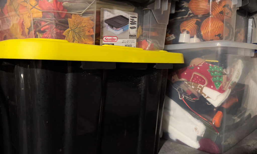 I mean we use totes for almost everything, from our rv hoses, our holiday décor, and any extra outdoor items.
